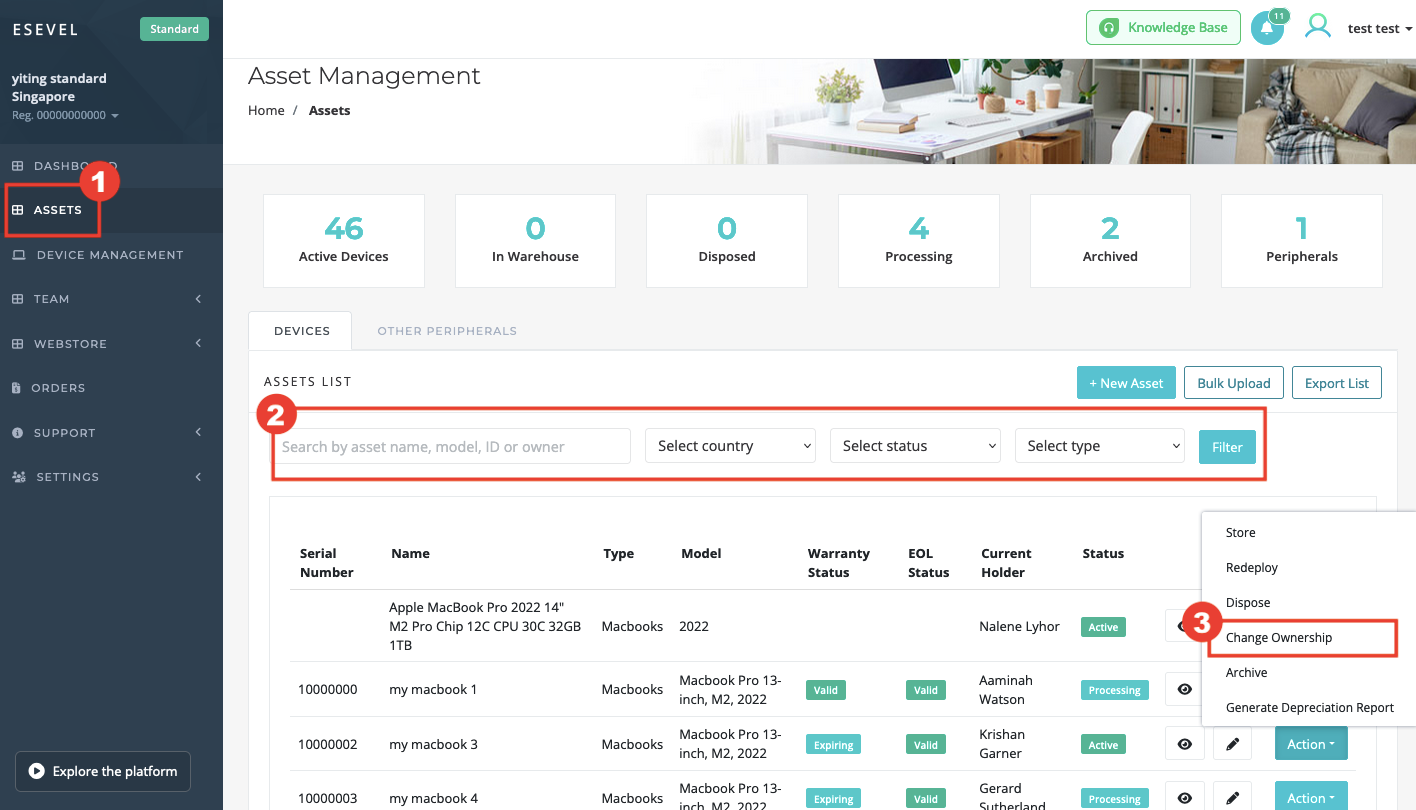Roles : IT and HR AdminChange Ownership: Change owners of an asset to a different employee (without physical redeployment)