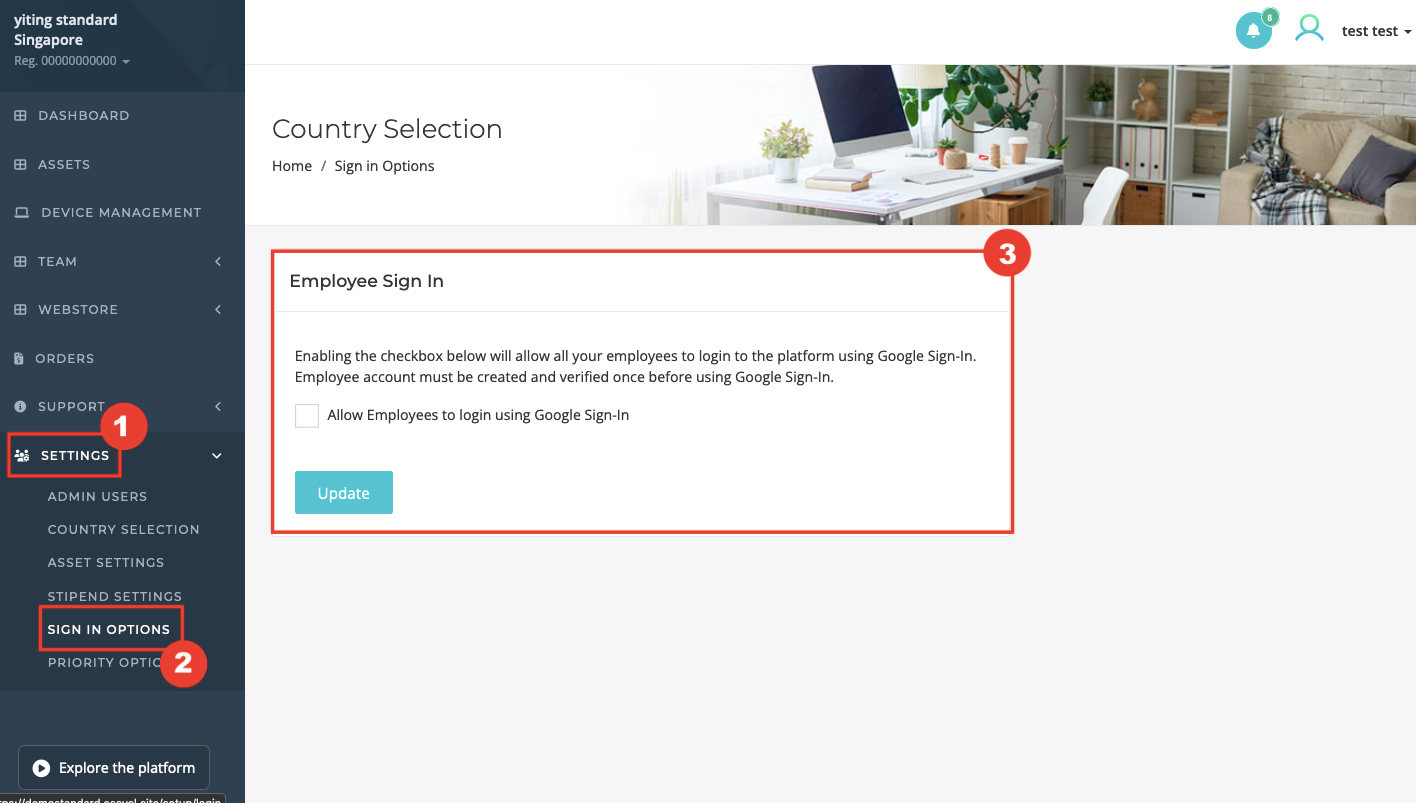 3. Tick the checkbox to allow the employees to sign in using Google, then click “Update”.